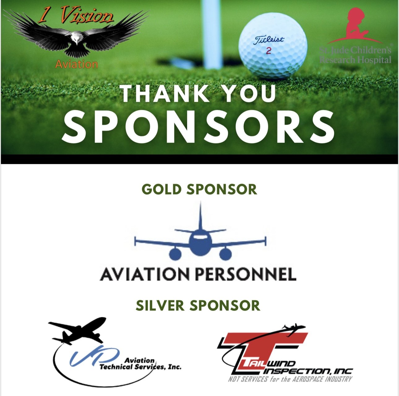 Our annual Golf Tournament would not be possible without the generous support of our sponsors. This year, we are honored to recognize Aviation Personnel as our Gold Sponsor, along with VP Aviation Technical Services, Inc. and Tailwind Inspection, Inc. as our Silver Sponsors.